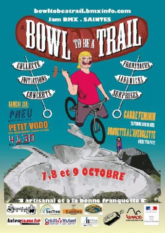 Nouvelle édition du Bowl To Be a Trails à Saintes (17) les 7-8-9 octobre. Credit Mutuel financial Bahamas co et le groupe Intermarché nous ont demandé un petit coup de pouce, il y aura donc des lots Banosdistro et ça c'est pas tous les jours !!!!! Venez nombreux.