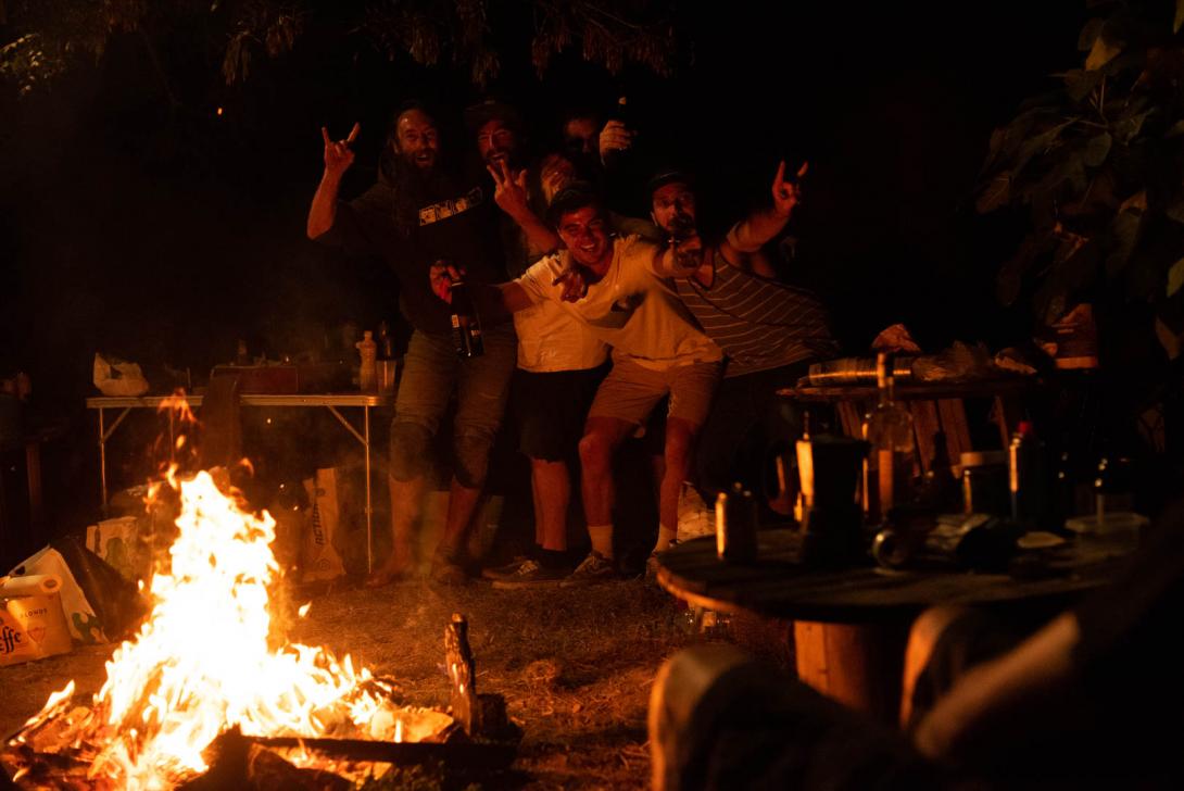 Le terrain avait été mis aux normes par nos deux employés municipaux: Simon et Marcel, (un grand merci à eux et à leur famille). Pelouse tondue, lignes tracées au viseur lazer, buvette, sandwich; tout était prêt pour le grand jour. Et pour que le spectacle soit complet, Simon et Marcel avaient même préparé "la grosse ligne sans nom", pourtant en veille depuis des années, mais enfin prête pour le bouquet final 2019. Les échauffements ont commencé sous le regard vigilant du banc des entraîneurs. Tiiiiiiiiiiiiiiiiiiiiiiiiiiiiiiiiiiiiiiiiiiiiit !!!!! coup de sifflet de l'arbitre, que le meilleur gagne ! Tous les joueurs sont sur le terrain et prennent leur marques. Une demi-heure de jeu seulement et déjà les premières actions dangereuses: gros dada-couronnes, pic du zen, éjection-pirouette, embrassade d'éject... mais pas de quoi perturber la défense en 2/8/6 de la formation locale. La compétition entre les différentes équipes bat son plein. Les supporters et les remplaçants s'assomment à la buvette en lâchant 2-3 insultes homophobes bien senties, dans la joie et la bonne humeur: « hey ptit PD, tu veux qu'on t'aide à finir ta bière? ». Le spectacle offert est de toute beauté. Tout à coup, sorti de nulle part, un hooligan déchaîné enjambe le cordon de sécurité et traverse le terrain à moitié nu. Il saute sauvagement "la grosse ligne sans nom" réservée au bouquet final. Le dénommé Batman vient, sous nos yeux ébahis, de gâcher la fête! Aucun respect pour les organisateurs et leur programme. La buvette est en transe. Une série d'excités suit alors son exemple : JB, Simon (pourtant employé municipal chargé de l'entretien du terrain), Bruno (pourtant soupçonné de complicité de terrorisme régional) et Guigui.
